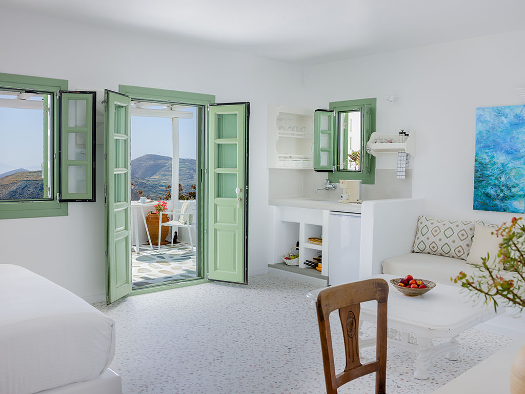Embrace the charm of our open-plan studio, where the beauty of your surroundings and the spectacular views of the Aegean sea merge seamlessly with a warm and inviting ambiance. Welcome to your own personal haven, where every moment is designed to be unforgettable.